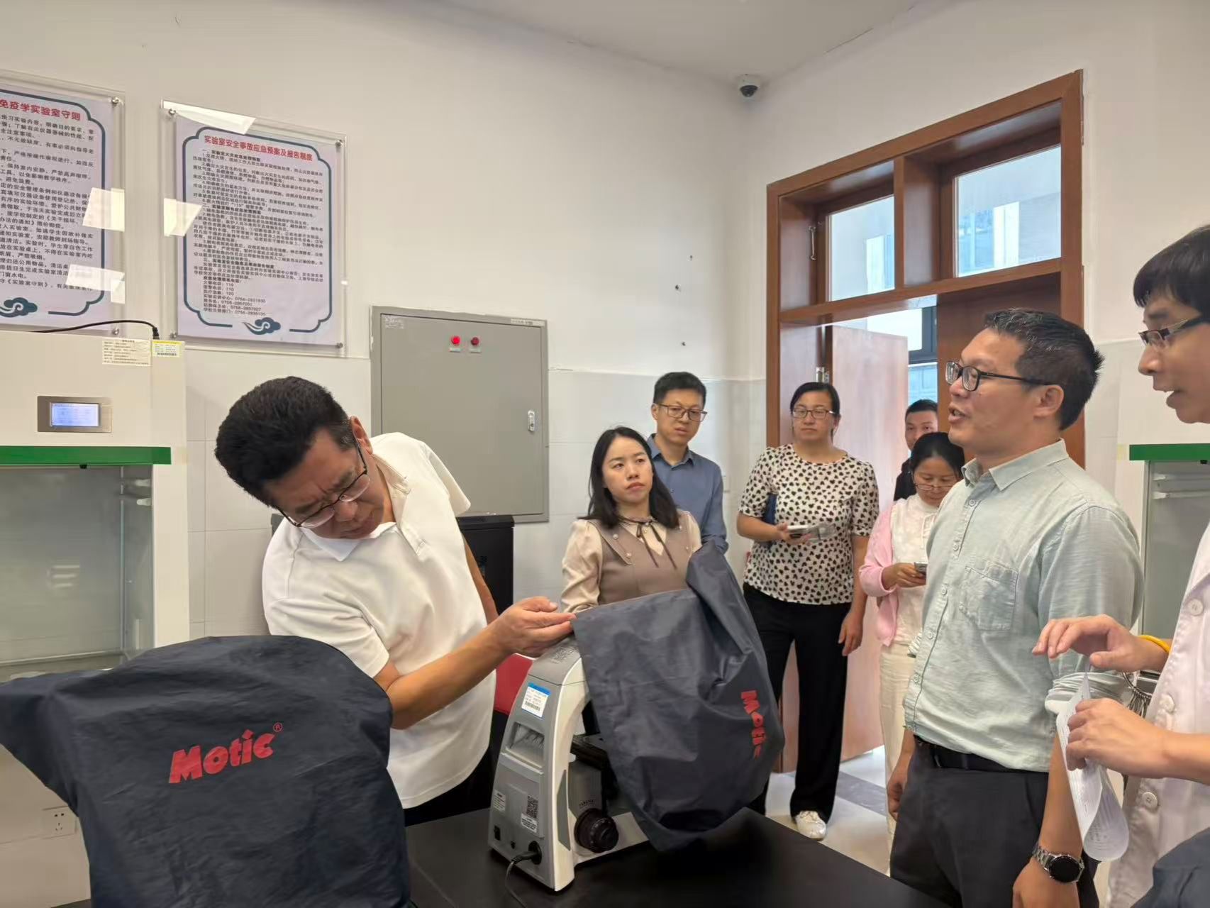 为切实保证基础医学院各实验室安全,保障教学工作安全有序运行,11月5日下午,基础医学组织开展2025-2026学年第一学期期中实验室安全专项检查。学院党支部书记段文彪、副书记李俊涛与各教研室主任一起深入化学品仓库、化学实验室、药理学实验室、病理实验室、免病实验室、解胚实验室及生命科学馆等教学科研场所,开展全面细致的安全检查工作。